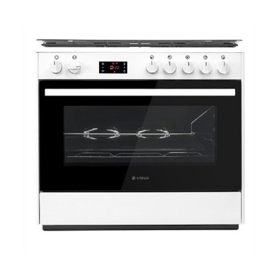 اجاق گاز 5 شعله با گنجایش محفظه فر 110 لیتر و جنس بدنه از استل با لعاب سفید