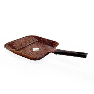 تابه گرانیتی گریل و استیک پز کاندید ( CANDID ) سایز 32 با بدنه آلومینیومی دایکست و رویه و کف گرانیتی 4 لایه، دارای دو بخش گریل و بخش مسطح به منظور پخت استیک