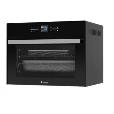 فر برقی رومیزی داتیس مدل DT-745 ظرفیت 46 لیتر یک فر تمام عیار بوده که امکانات و ویژگی هایش در کنار طراحی جذابش حواس ها را به خود معطوف می کند. این محصول دارای نمای ظاهری مشکی با دستگیره آلومینیومی آنادایز شده است. این فر رومیزی داتیس دارای 2 المنت با مجموع و توان حرارتی 2000 وات بوده و جذاب ترین آپشن آن تعداد برنامه پخت های متنوع این محصول است که به تعداد 6 برنامه اتوماتیک و 10 برنامه پخت نیمه اتوماتیک می رسد. جنس بدنه خارجی این فر رومیزی از آهن با رنگ الکترواستاتیک است. همچنین بدنه داخلی از لعاب پوششی easy to clean می باشد و یکی از مهمترین شاخصه های این فر رومیزی مجهز بودن به سینی بخارپز است که این قابلیت را برای آشپز فعال می کند. همچنین از دیگر مزایای این محصول می توان به فن کانوکشن و زمان بند تنظیم دما اشاره کرد که در کنار فن خنک کننده اتوماتیک این محصول را بی نظیر کرده است