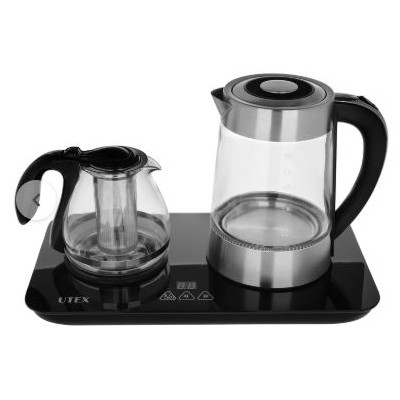 کتری و قوری کنار هم، جنس کتری و قوری از استیل مقاوم و شیشه پیرکس، توان مصرفی برابر 1800 وات، سبک و دارای طراحی ارگونومیک