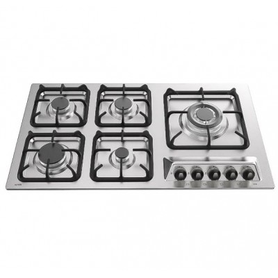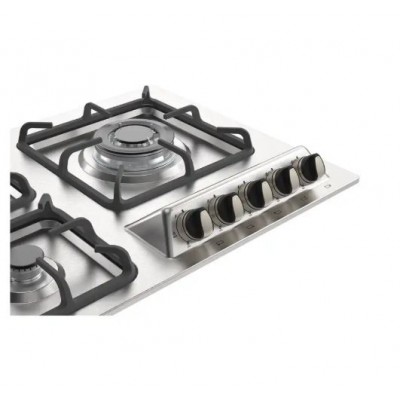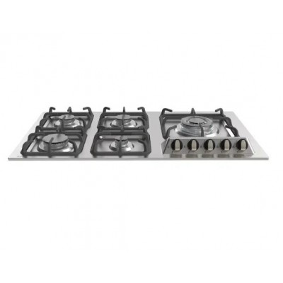 5 شعله داری شعله پلوپز در گوشه سمت راست، مجهز به ولوم باکالیتی، جنس صفحه از استیل ضد خش مقاوم، جنس شبکه گسترده از چدن مقاوم، استفاده از گاز شهری، رتبه مصرف انرژی A